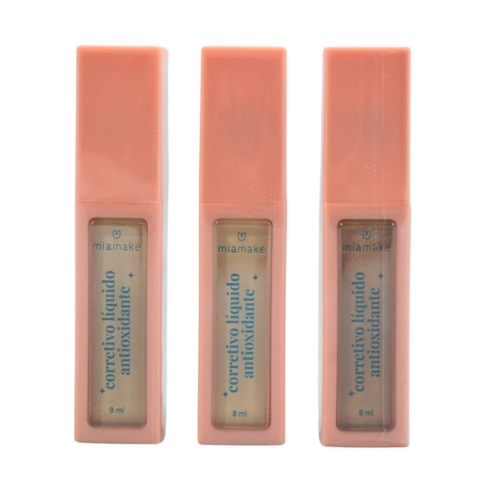 Kit 3 Corretivo Líquido á Prova Dágua Antioxidante Bege Médio Mia Make 401